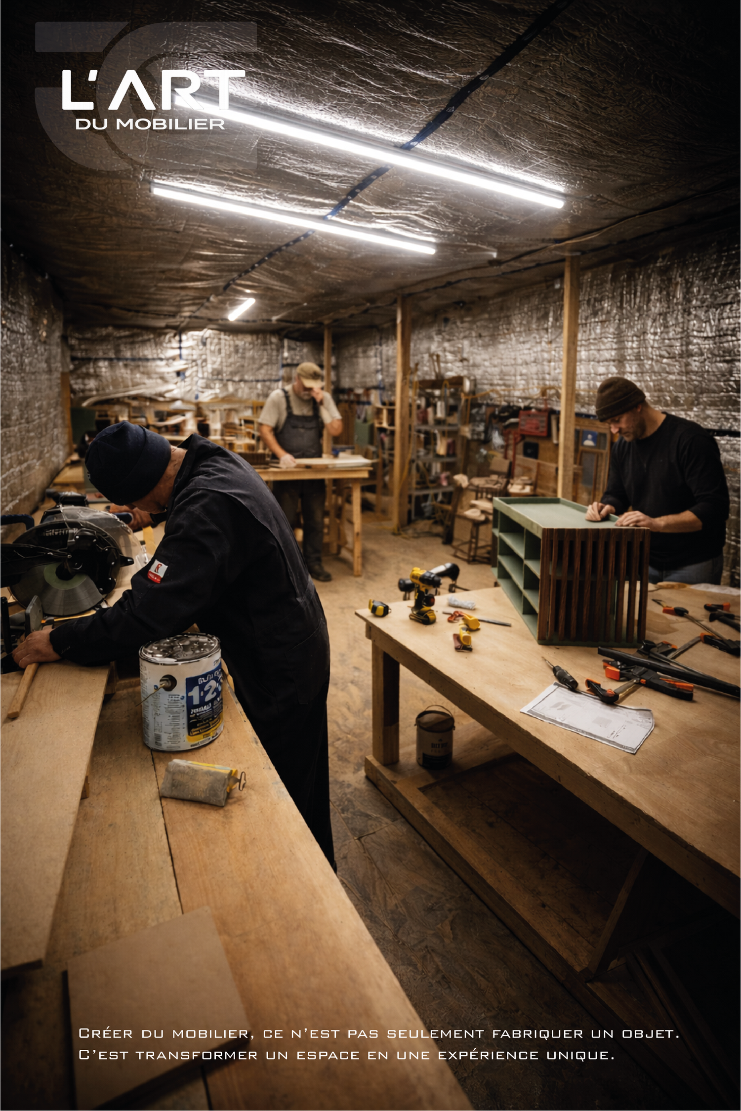 Notre travail allie design fonctionnel, savoir-faire artisanal et responsabilité environnementale : nous revalorisons également les meubles existants, optimisons les espaces et fabriquons de nouvelles pièces à partir de